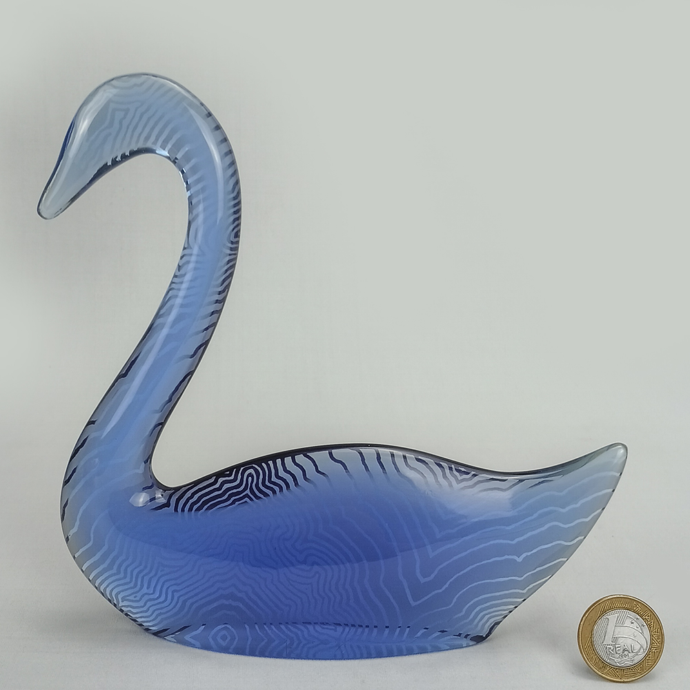 Bela escultura antiga em resina (“lucite”) do artista Abraham Palatnik (1928-2020). Nascido em Natal/RN foi um artista plástico brasileiro, pioneiro da abstração geométrica e da arte cinética no Brasil. Algumas de suas obras contêm instalações elétricas que criam movimentos e jogos de luzes. A escultura representa um cisne de cor azul, rico em detalhes. Não possui assinatura. De meados do século passado, está em ótimo estado de conservação, ideal para decoração, coleção ou para presentear.