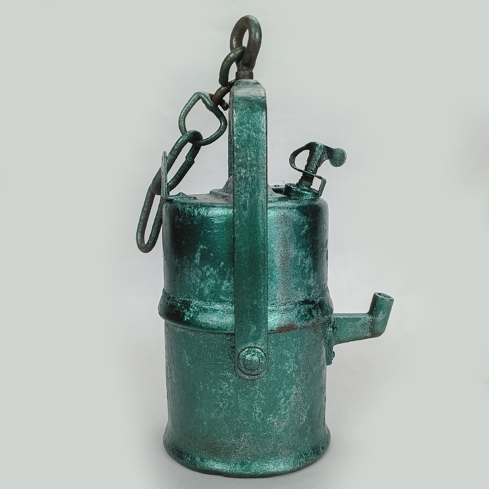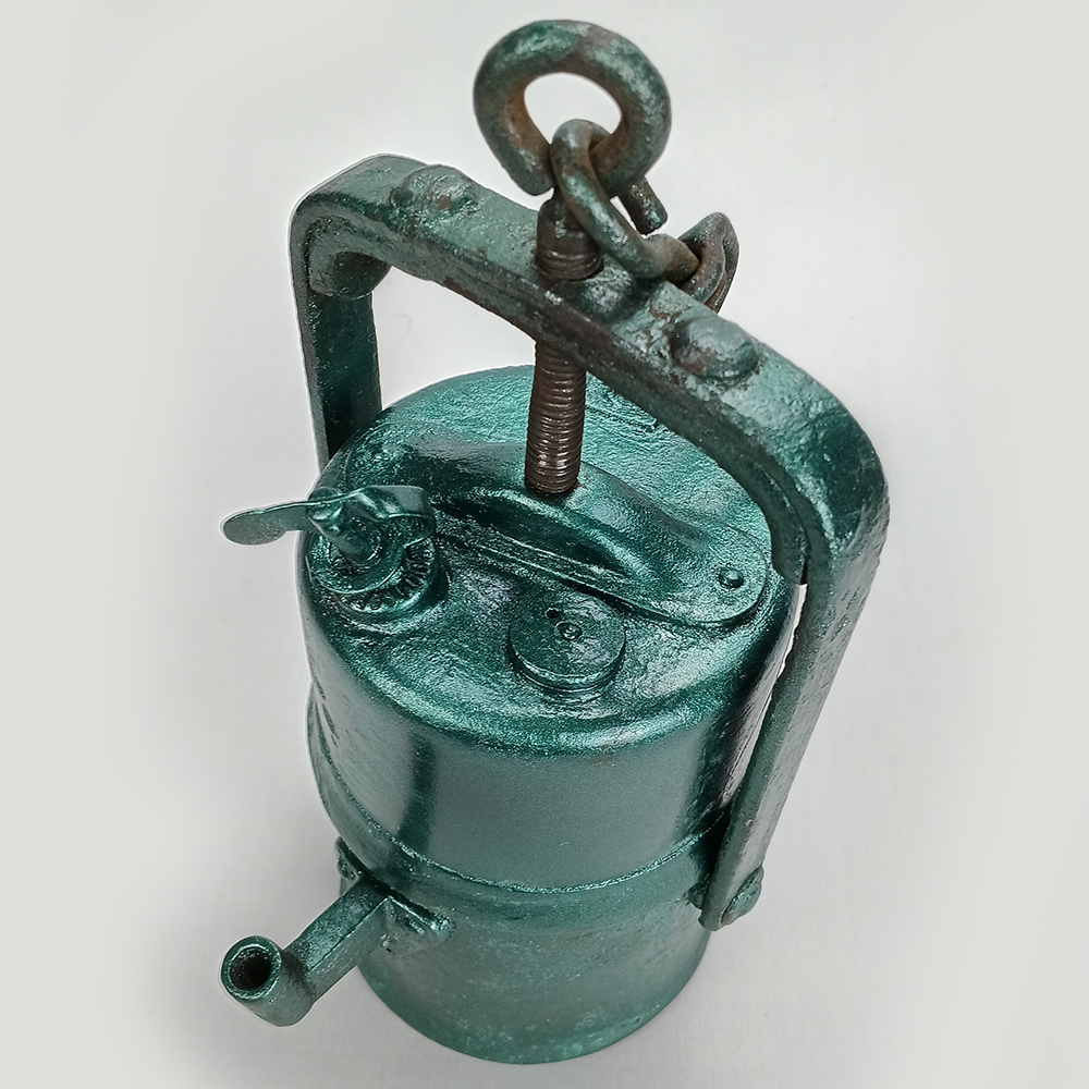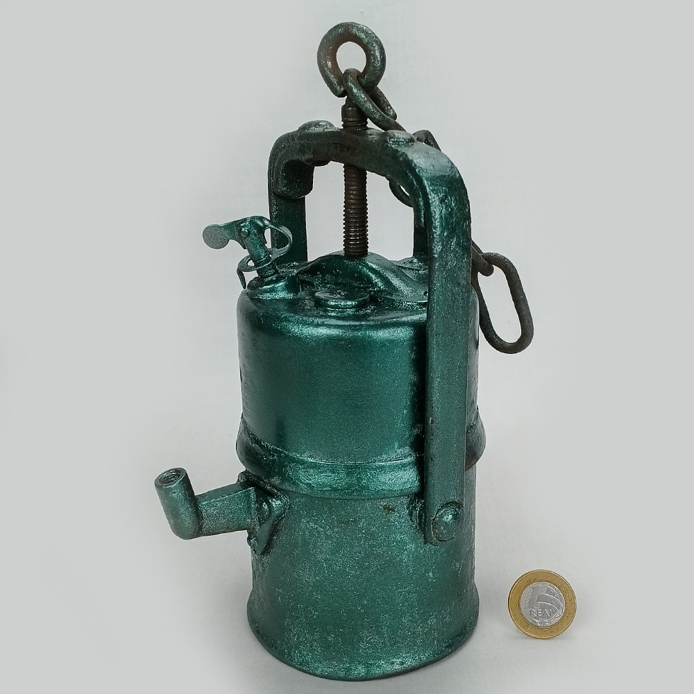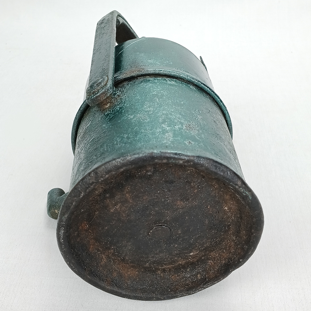 LU 09 – Lanterna de carbureto antiga feita de ferro com pintura verde