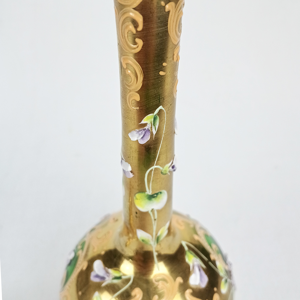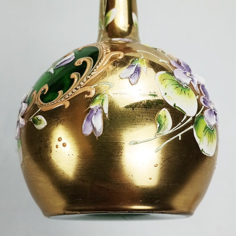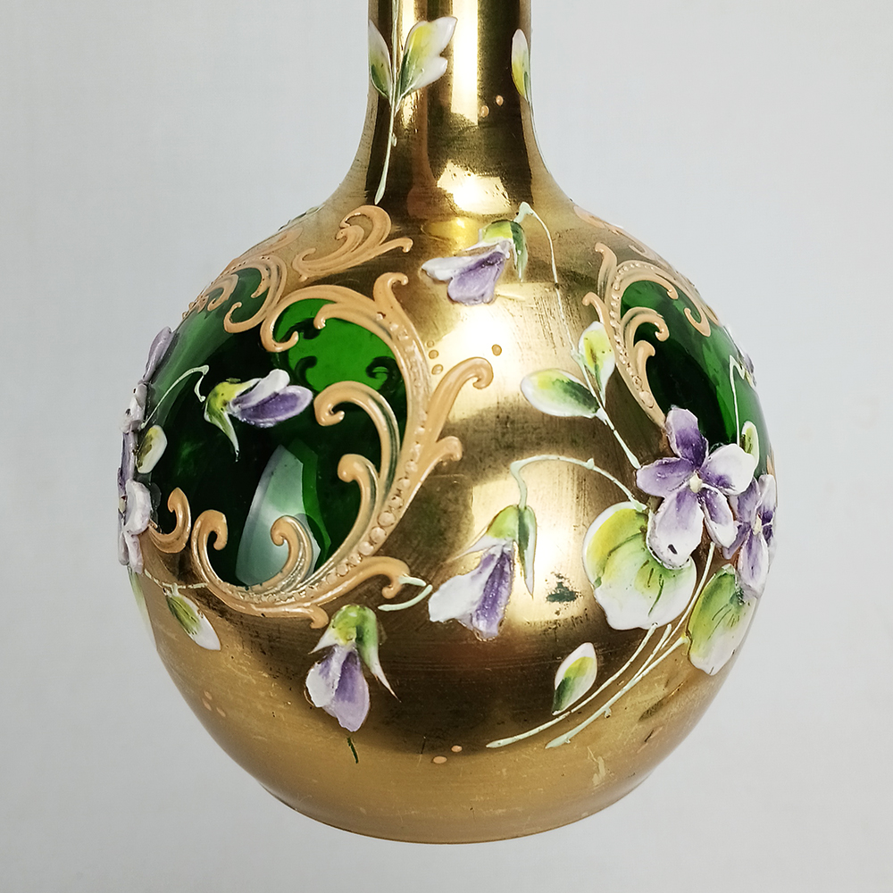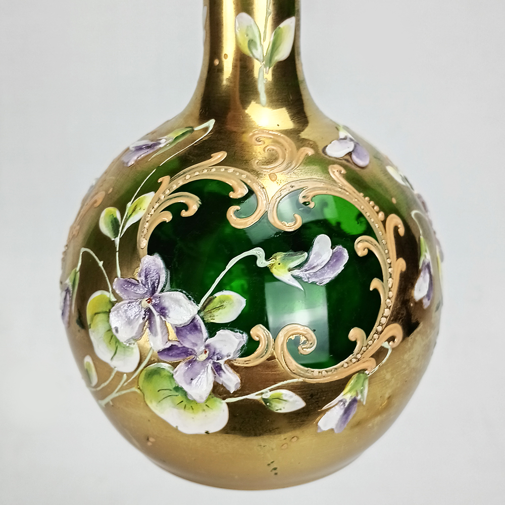 CR 09 – Garrafa antiga em vidro veneziano ou da Boêmia decorada com flores Art Nouveau em esmalte e ouro