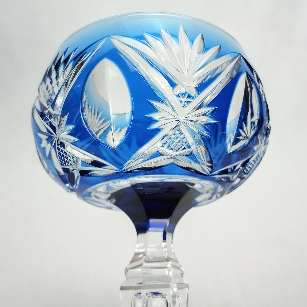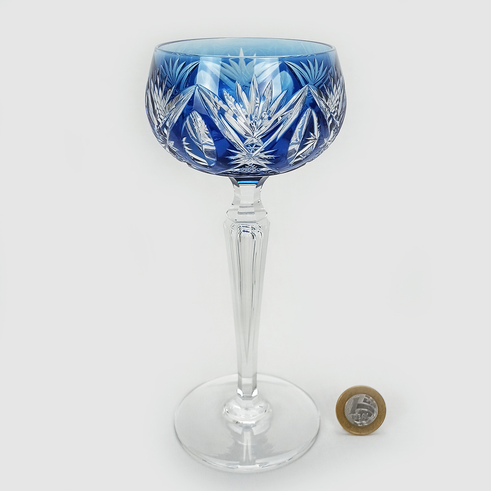 CR 10 – Taça alta para vinho em cristal azul ricamente lapidado à mão com haste longa