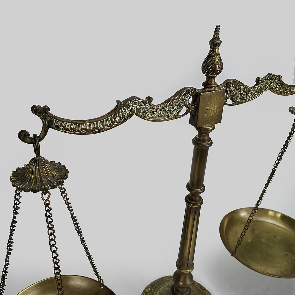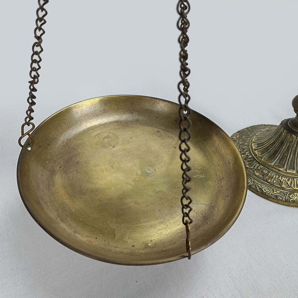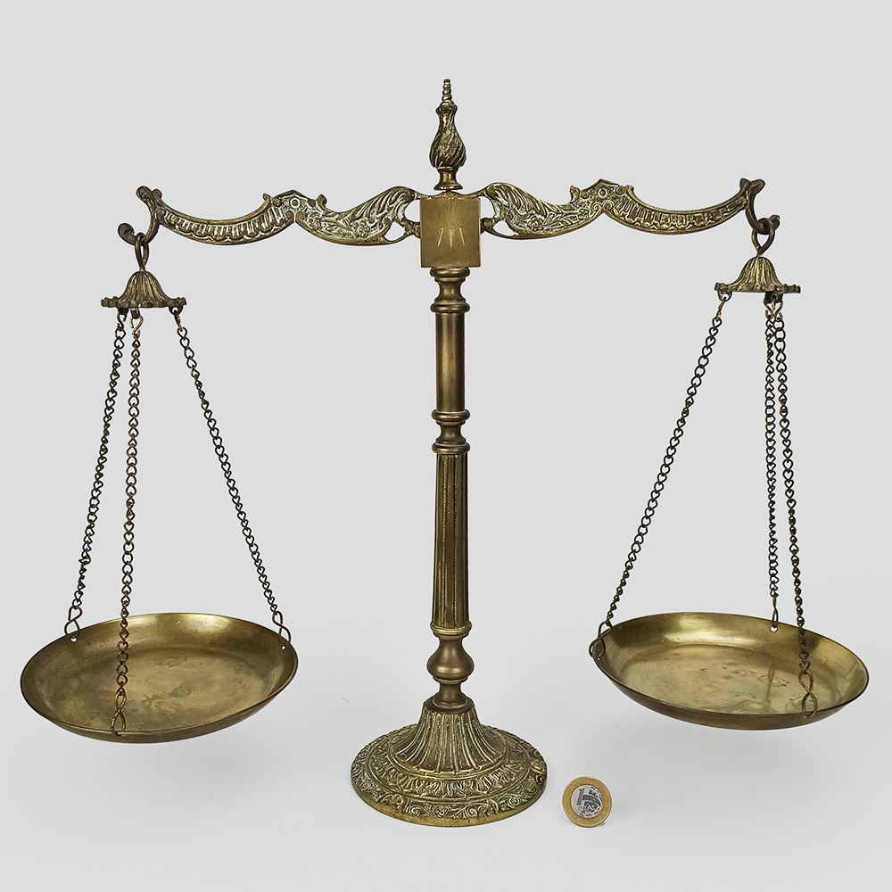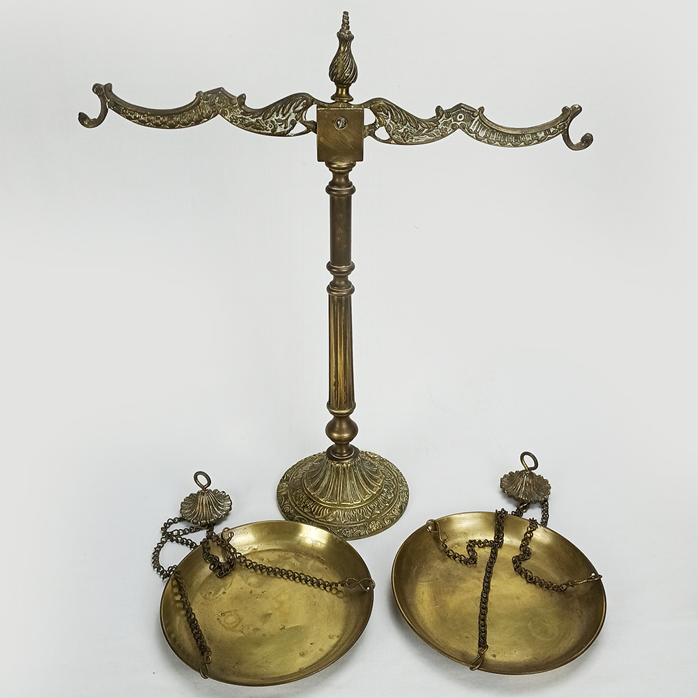 Antiga e bela balança feita de bronze. É decorada com relevos e possui 2 pratos com correntes. É um dos símbolos da Advocacia/Justiça. Está em ótimo estado de conservação, ideal para decoração ou para presentear.