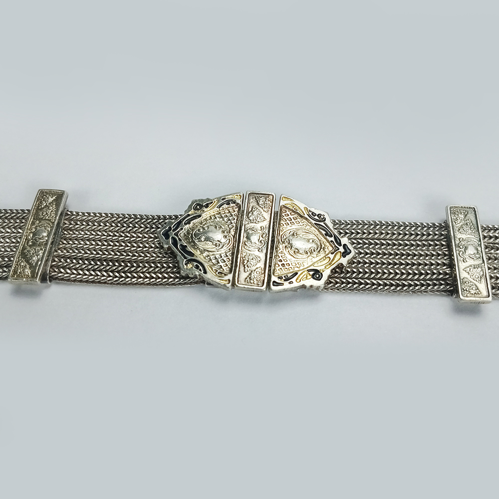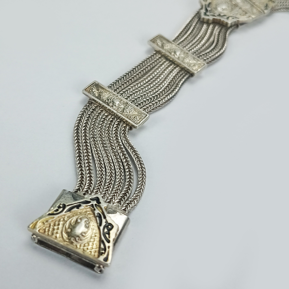 DI 51 – Pulseira antiga em prata de lei 925 com 7 correntes e medalhão central