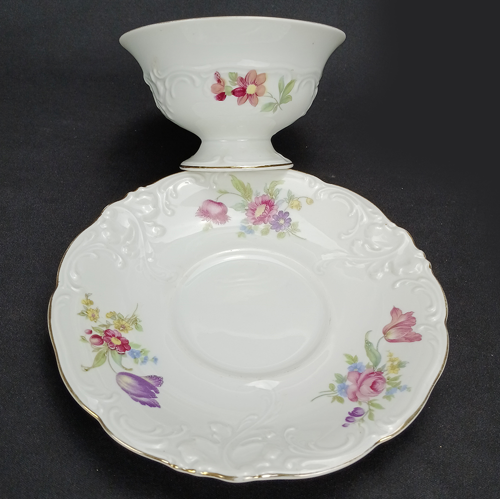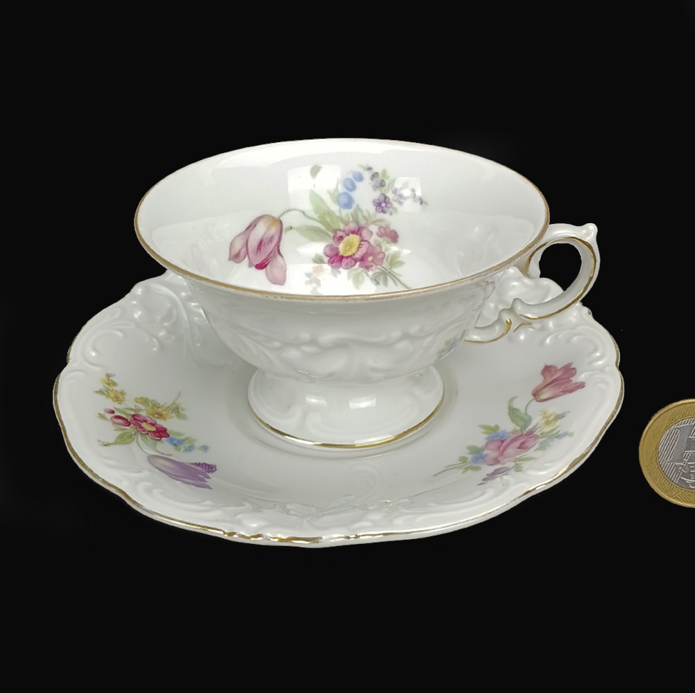LO 75 – Xícara de café ou chá em porcelana polonesa KPM decorada com flores e relevos