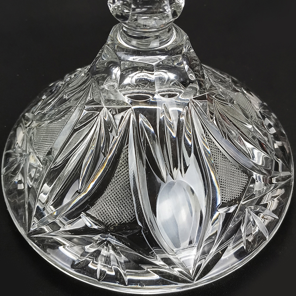 CR 49 – Compoteira vintage com pé alto em cristal incolor ricamente decorada