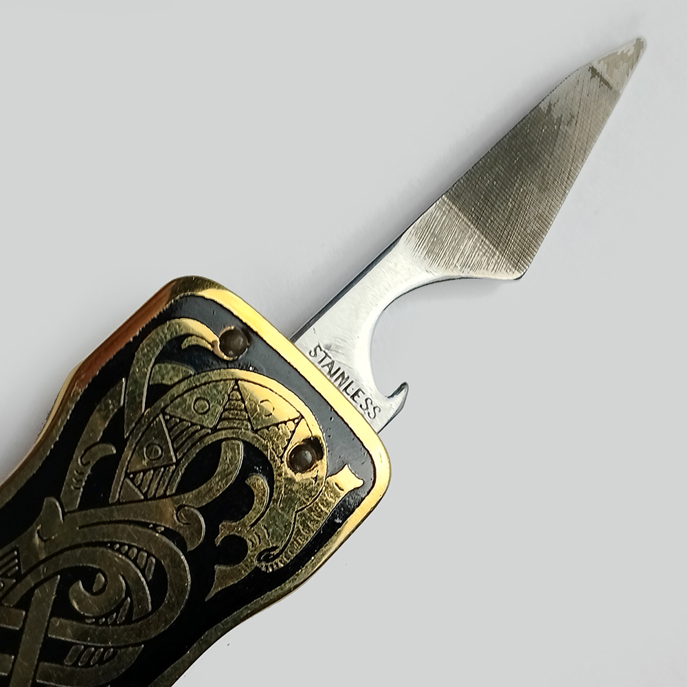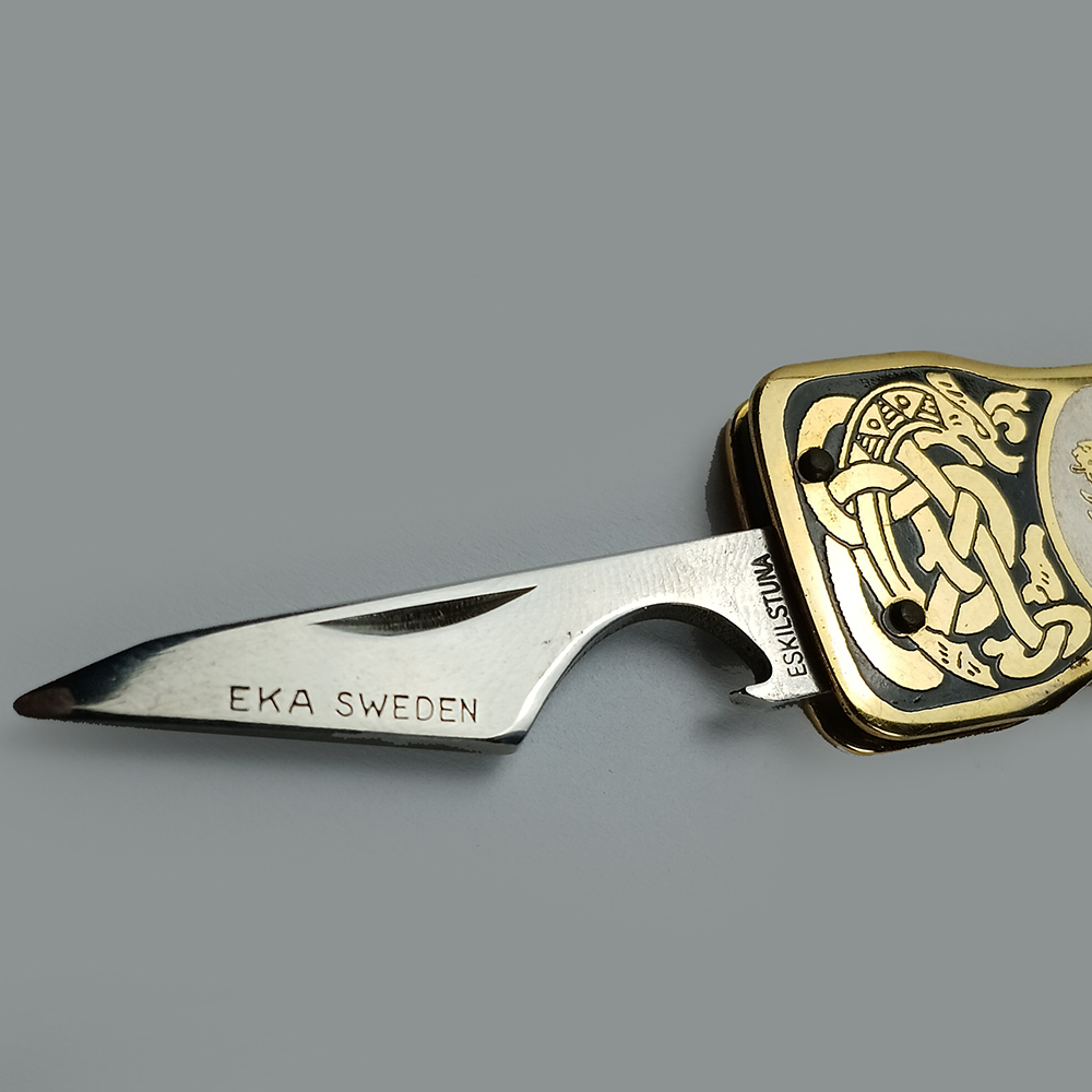 CANIVETE SUÍÇO dobrável EKA Sweden vintage com design gótico Viking Serpent com estojo e caixa originais. | 5 cm x 2,5 cm