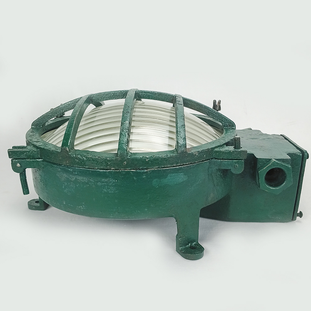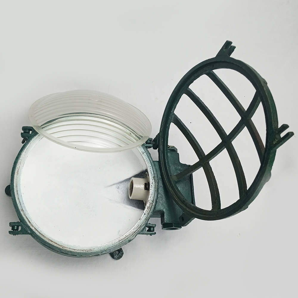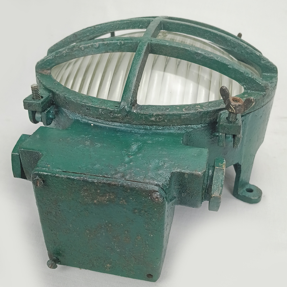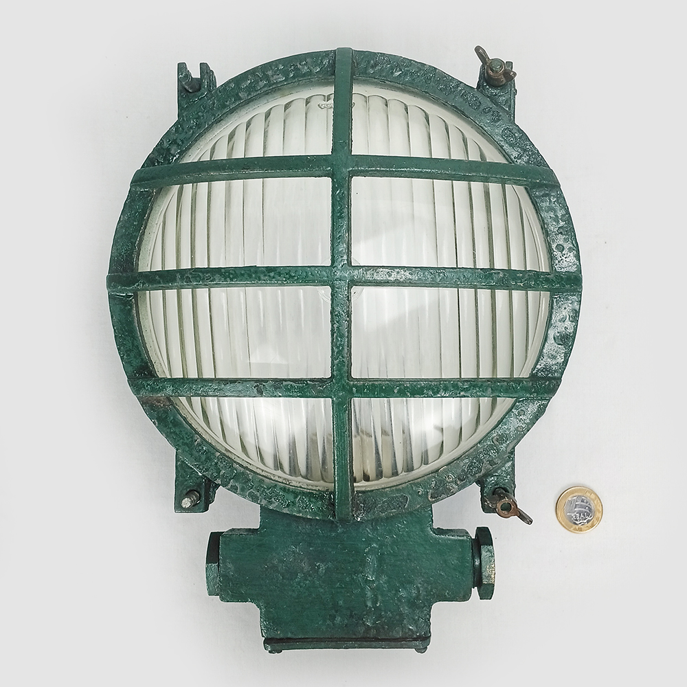 Antiga luminária náutica, feita de ferro fundido e com vidro original.