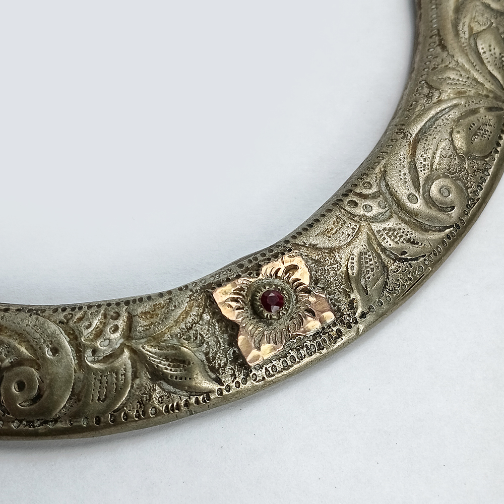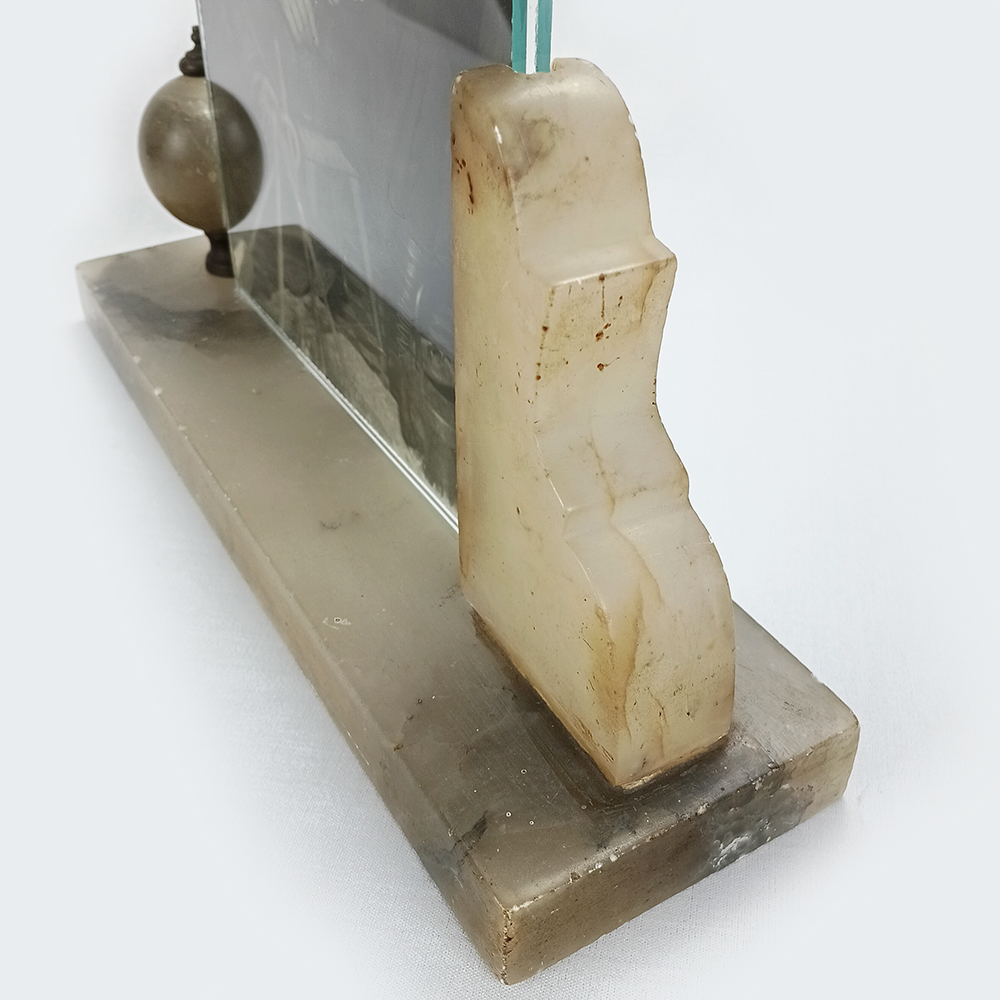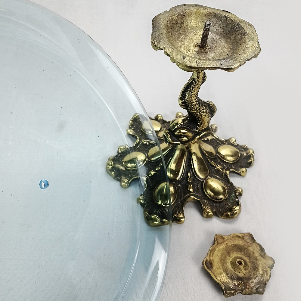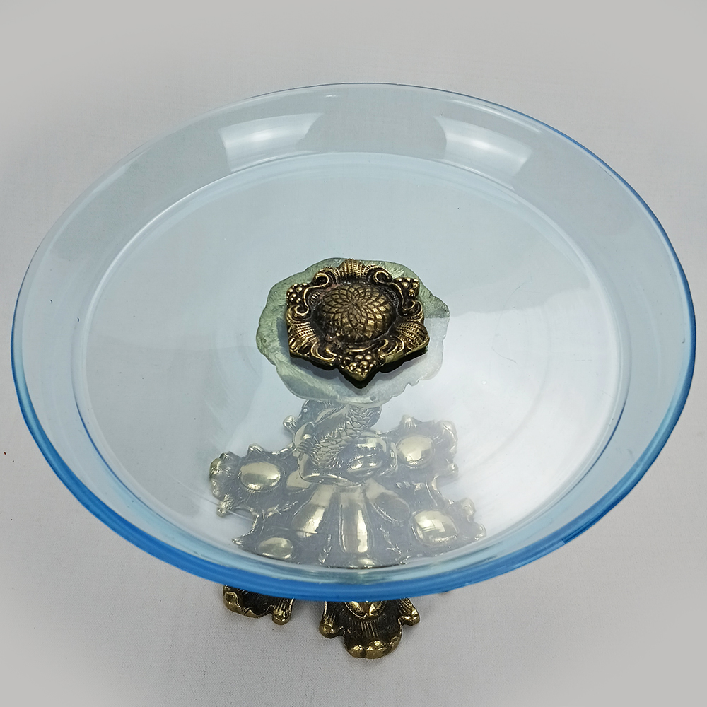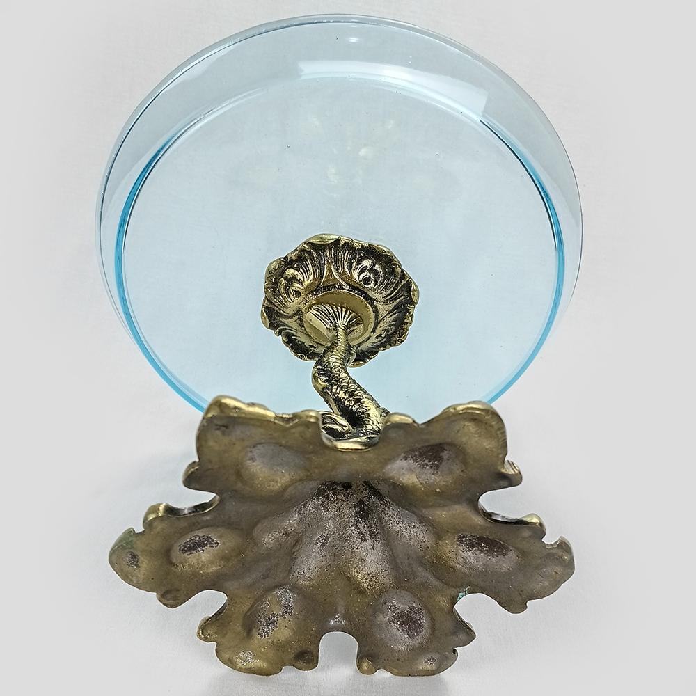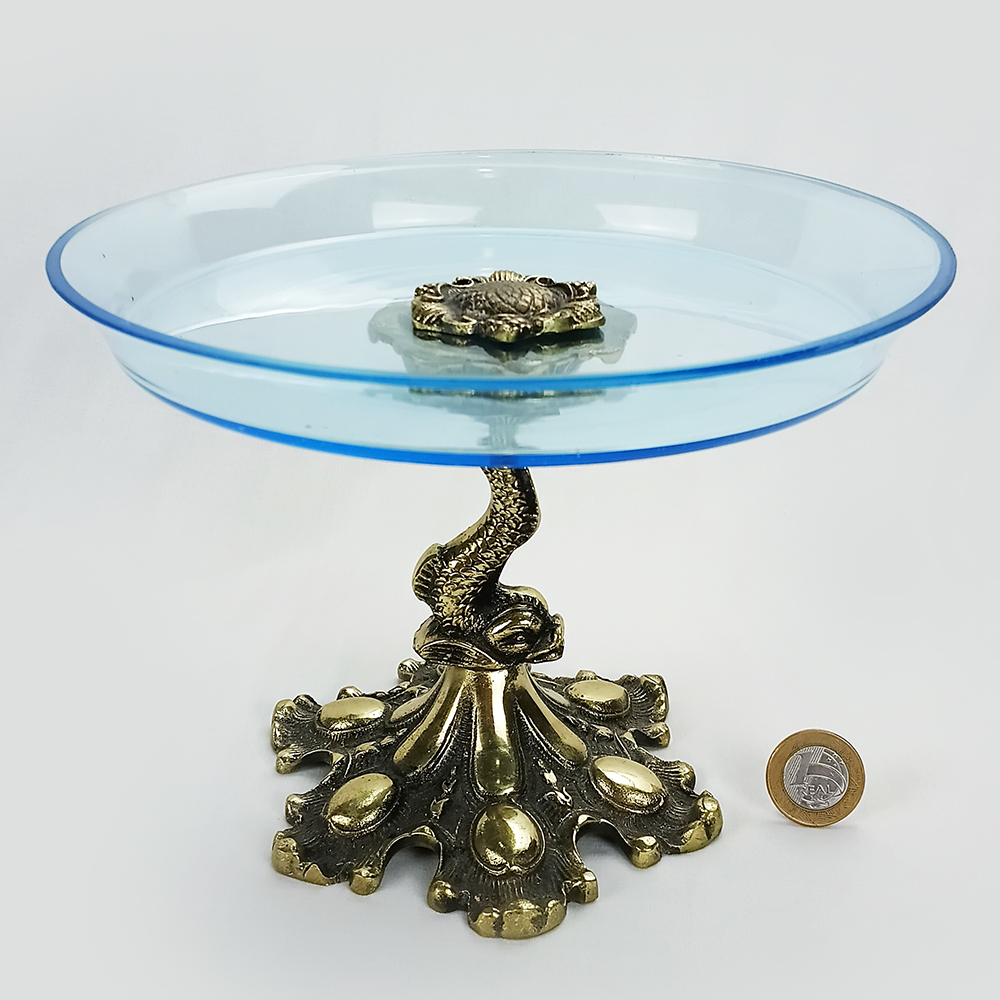 CR 03 – Fruteira ou centro de mesa em bronze dourado com prato em vidro azul