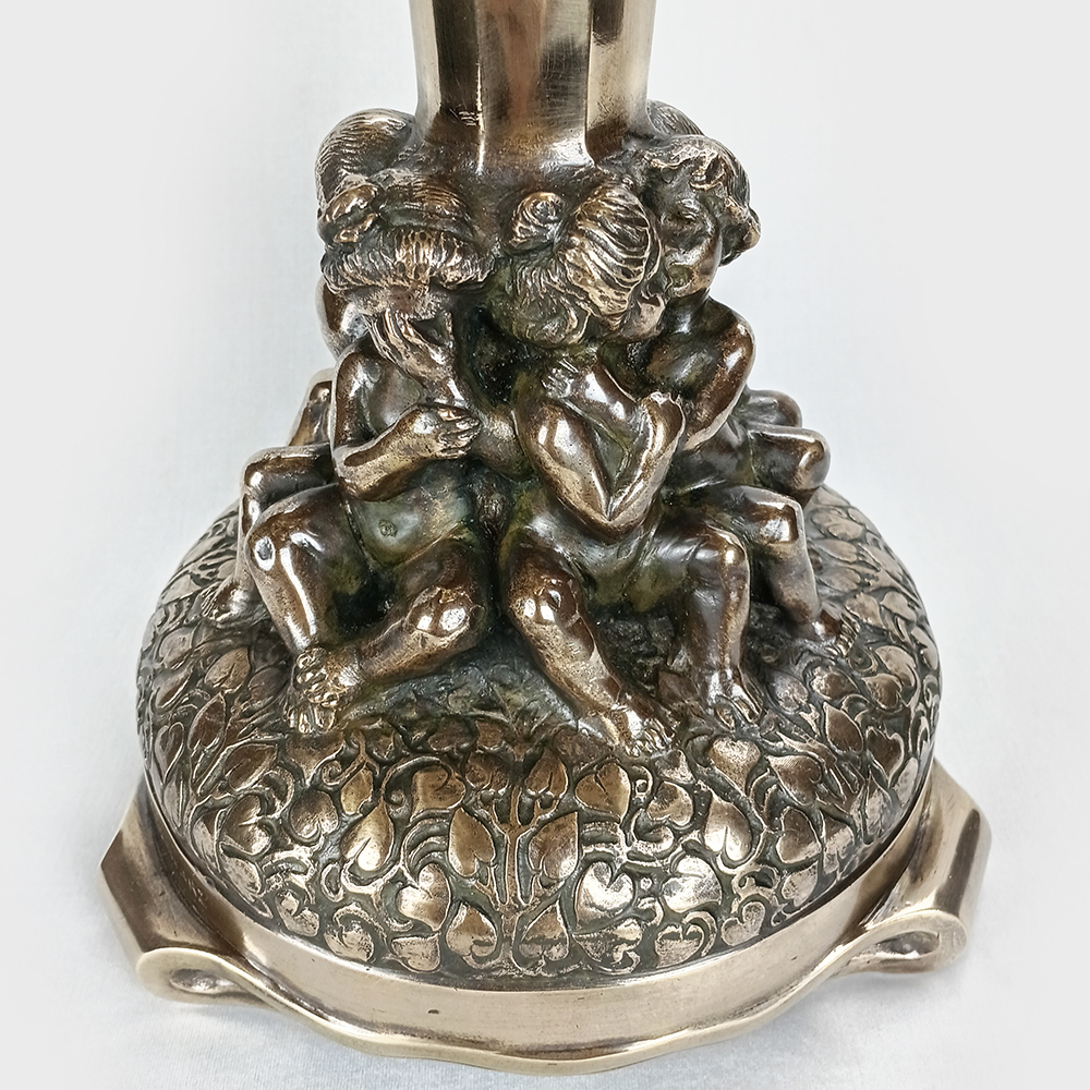 DI 08 – Centro de mesa ou fruteira alta em bronze com esculturas de crianças assinado K. Schwarz